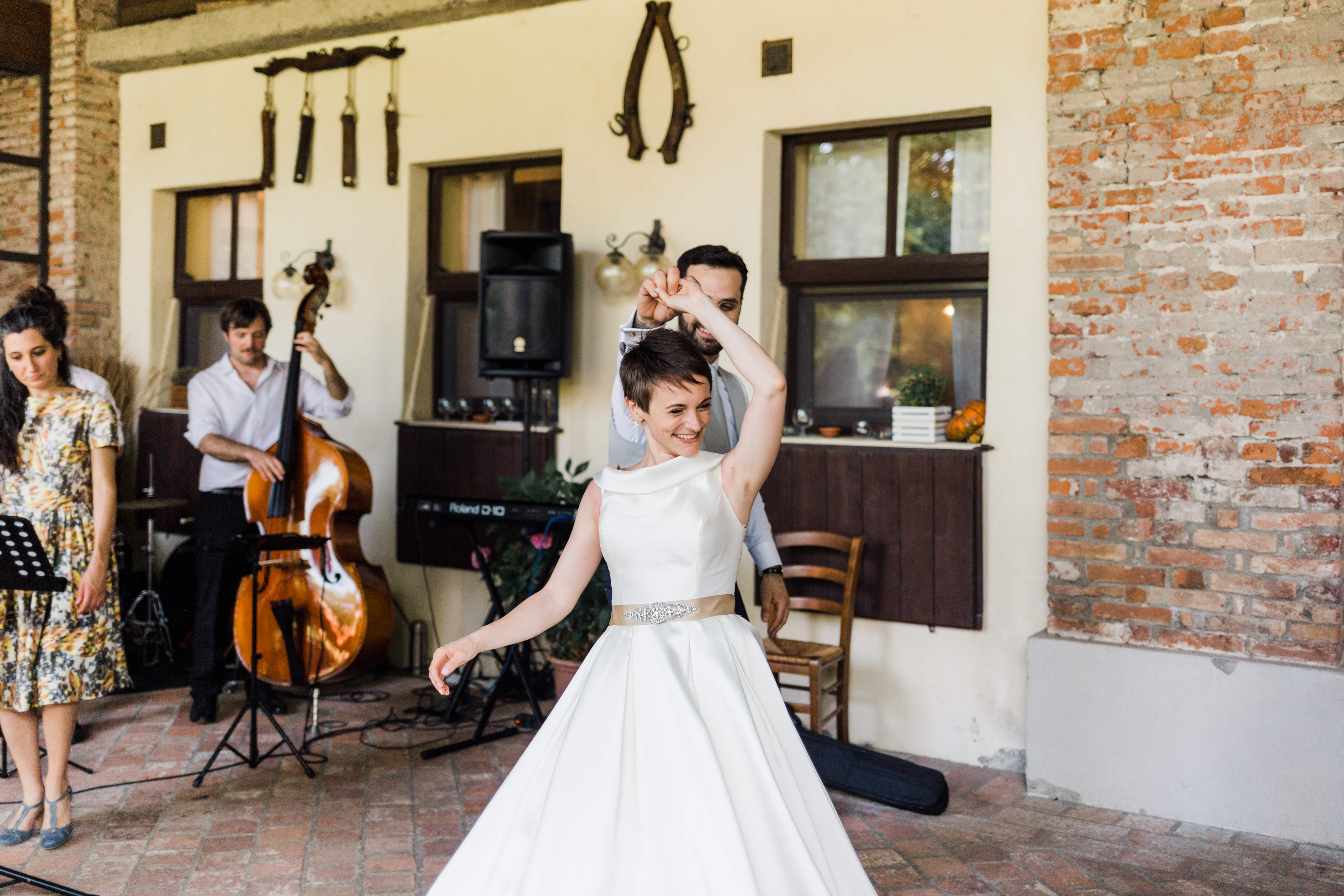"Ci siamo trovati benissimo. Il matrimonio è stato proprio come lo volevamo. Cercavamo un'atmosfera anni '30 e Guido ci ha aiutato e guidato alla perfezione offrendoci la band giusta cucita sul nostro budget. Non ci credevamo ma al matrimonio due ballerini professionisti hanno coinvolto i nostri amici e tre giorni prima del matrimonio ci hanno insegnato due passi swing per farci fare bella figura il giorno delle nozze. I ragazzi sono giovani e molto disponibili e carini e hanno tante proposte diverse. Consigliatissimi".